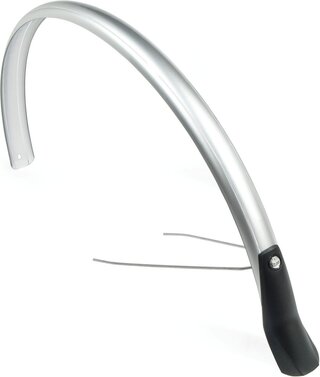 Eurofender achterspatbord Snello 28 inch inclusief stang,spatlap en bevestigings knop zilver 46 mm, oa gemonteerd op Batavus Gazelle en Giant